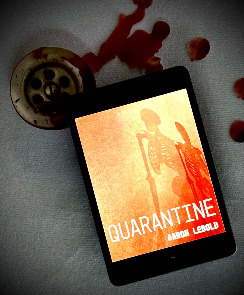 Quarantined, face masks, hand sanitizer and six-feet distances, It’s mid-March of 2020 and a full blown pandemic is imminent. While society is shutting down, an author is battling alcoholism, self abuse and reoccurring issues with his marriage. When the lines between illusion and reality become blurred, the burden is too much. His self destruction leads him to a lack of sanity, increased paranoia, government conspiracies and murder. This is my review of Quarantine by Aaron Lebold, it’s gonna be a wild one so hang on. This book straddles the line of extreme fiction and true-crime, which in turn gives it a very disturbing taste of reality. Justified violent acts of a twisted love is what peaked my curiosity and drew my attention. Then my landscape of serene morbid curiosity quickly coagulated into intense shock. You are literally placed into a psychological story with gore soaked extreme elements. Aaron Lebold you had me at “crimson snail trail.” Aaron Lebold has this poetic style of writing that is so beautiful, all the while the elegance of his written word slowly transforms into full blown anxiety. Before ya’ know it, your showering with dismembered corpses. I pretty much had the facial expressions of Nicholas Cage from the movie 8mm the whole time reading this. When it comes to Quarantine, ya’ better double up on the heavy duty garbage bags.